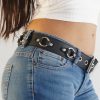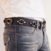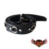 Cinturón de cuero ecológico negro con 1 hilera de argollas 20/4 níquel, pegado y cosido para reforzar su resistencia y densidad.