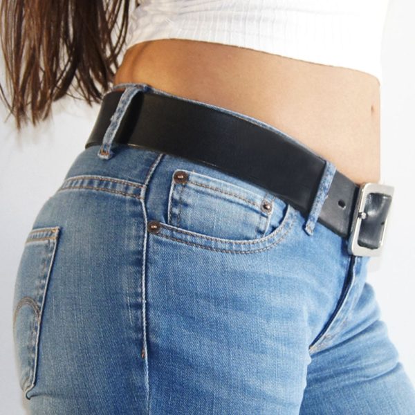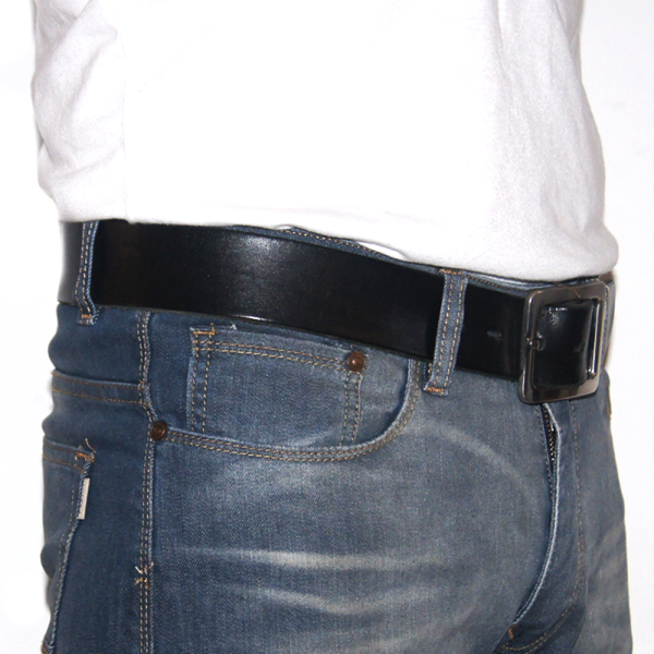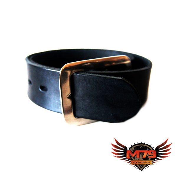 Cinturón de cuero vacuno negro liso. Borde aerodinámico. Ancho de 4cm.